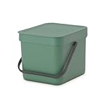 Brabantia Sort & Go Food Trash Can (1.6 Gal/Fir Green) Small Countertop Kitchen Compost Caddy with Handle & Removable Lid, Easy Clean, Fixtures Included for Wall/Cupboard Mounting