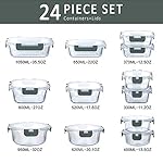 M MCIRCO 24-Piece Glass Food Storage Containers with Upgraded Snap Locking Lids,Glass Meal Prep Containers Set – Airtight Lunch Containers, Microwave, Oven, Freezer and Dishwasher
