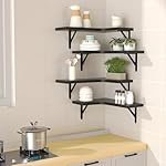 Corner Floating Shelves Wall Mounted Set of 4, Rustic Wood Storage Display Wall Shelves for Home Decor, Bathroom, Kitchen, Bedroom, Living Room, Office (Black)