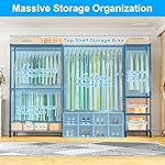 ▶【STURDY & RELIABLE】Garment rack made of top quality carbon steel,Makes it stable、sturdy and reliable,Not easy to tip over,Portable closets for hanging clothes adopt top quality black coating to give protection to it from water and rust,Weight Capacity:Total 800lbs ,The middle stretchable hanger rod also enhances the stability of the closet organizer system when using!
