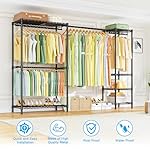 ▶【PORTABLE & MULTI-SCENARIO】Our clothes racks for hanging clothes can be flexibly and freely assembled,You’ll take portable clothes rack anywhere you wish to have it,Such as bedroom, laundry room, living room, cloakroom, hallway, etc,Coupled with the Anti-tip Device to fortify the stability of the heavy duty clothes rack,You are going to get a flexible closet organizer and storage system,Can be mobile or fixed!