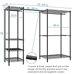 ▶【Stretchable Hanger Rod】The Hanger Rod in the course of hanging clothes rack can be freely adjusted between 73”w-97”w according to the width you wish to have,You’ll also remove the Hanger Rod in the course of clothing rack with shelves,So that you get two independent heavy duty clothes rack, Which can be used in different scenarios according to your needs and storage different items!