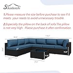 Shintenchi 7 Pieces Outdoor Patio Sectional Sofa Couch, Wicker Furniture Patio Conversation Sets with Washable Cushions & Coffee Table for Garden, Poolside, Backyard (Aegean Blue)