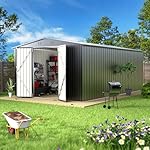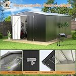 10 x 14 FT Outdoor Storage Shed, Metal Waterproof Storage Shed Steel Utility Garden Tool Shed with Door & Lock Outdoor Storage,All-Weather Shelter for Bike, Gardening Tools, Lawn Mowers