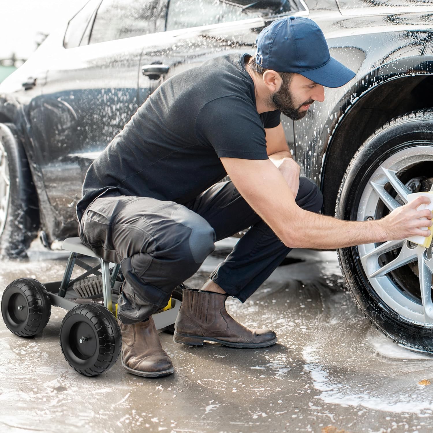 GARDEN STOOL – This rolling gardening scooter is ideal for alleviating back and knee pain when planting or weeding. You can also use this handy stool with wheels for other tasks around the home like painting, cleaning, car repair, and more.