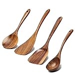 MULTI USE: Wooden cooking utensil set includes mixing spoons, flat, angled, and slotted spatula. Great for serving, flipping eggs, stirfrying, fish, pancakes, and out of doors use.