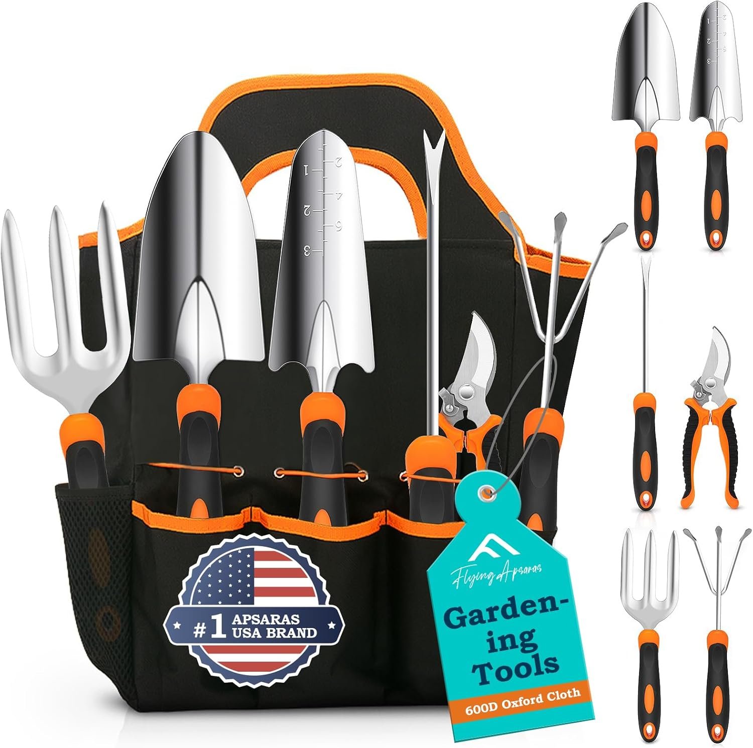 APSARAS USA Gardening Tool Set,Stainless Steel Heavy Duty Gardening Tools, Garden Tool Set with Non-Slip Rubber Grip,600D Oxford Cloth Storage Tote Bag, Perfect Garden Tools Gifts for Father