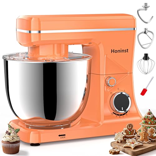 10+P Speed & 8-In-1 Splash Guard: Honinst stand mixer features multiple speeds settings, offering precise control for mixing, kneading, and whipping, making it ideal for baking bread, cakes, and cookies. Upgraded splash-proof cover with multifunctional features --- measuring cup and stick, dough cutter, egg white separator and toothed cutter, for food preparation