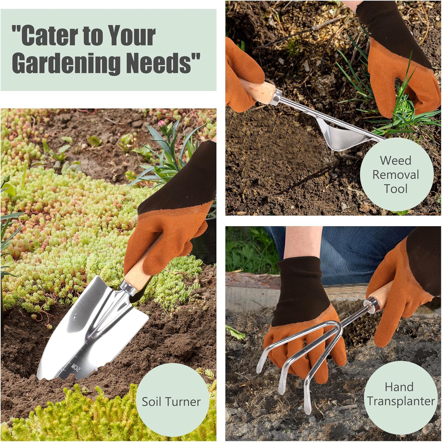 🛡️ [Stainless Steel Garden Tool Set] – Crafted with heavy-duty stainless steel, these garden tools resist rust, corrosion, and deformation—ideal for heavy soil, weeds, and year-round use.