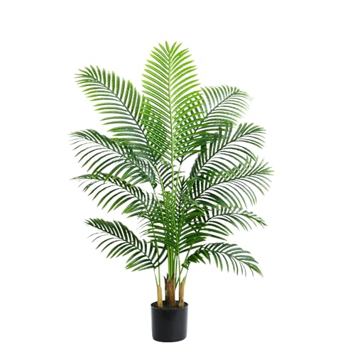 Artificial Fake Palm Tree 4FT Tropical Faux Palm Trees in Pot with 13 Trunks and Real Bark Design Areca Floor Plant Faux Palm Plant for Indoor Outdoor Home Decor