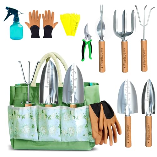 24-Piece Gardening Tools Set with Bag – Heavy-Duty Rust-Proof Hand Tools with Wooden Handles Including 15 Plant Tags – Ideal Gift for Women, Men, Mom, Dad & Gardeners