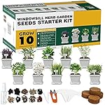 10 Herb Seeds Garden Starter Grow Kit with White Pots, Markers, Nutritional Soil, Watering, Herb Clipper, Complete Indoor Potted Plant Growing Set for Kitchen DIY