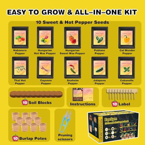 All-in-One Planting Kit: This pepper seeds variety pack includes 10 heirloom hot and sweet pepper seeds,10 soil, 10 labels, 10 pots, 1 scissors, and 1 guide, highest for beginners, families, and indoor garden lovers having a look to grow their very own food