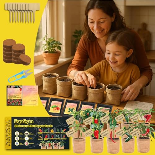 10 Pepper Seeds Window Garden Kit – Hot & Sweet Peppers Seeds for Indoor & Outdoor Planting, Gardening Gift for Kids, Moms, Women, Beginners, Complete Starter Kit Vegetable Garden Starter