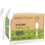 100% Compostable 200 Count No Plastic Spoons, Plastic Utensils, The Heavyweight Heavy Duty Flatware is Eco-Friendly Products for Lounge Party Wedding Office BBQ Picnic Camping.