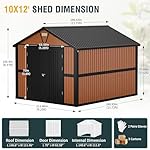 Extra Large Storage Shed: Florise spacious 10×12 Ft outdoor shed measuring 111.46″Lx140.63″Wx100.4 “H(9.25×11.72×8.37 ft), provides ample storage space for quite a lot of items. Please check the dimension diagram carefully before purchasing. Ideal for storing a range of items such as snow blowers, lawnmowers, outdoor chairs, bikes, motorcycle,grills, generators,and more.