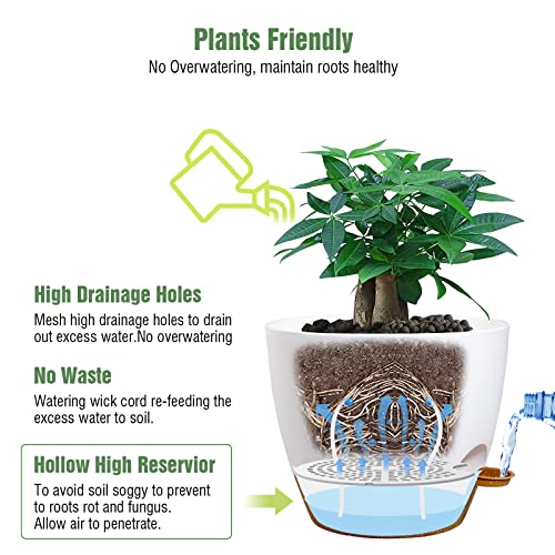 [2IN1 SELF WATERING POTS] The planters has a removable watering feeder. You’ll watering from bottom directly or watering from the top, the excess water will drip into the bottom reservoir. It prevents root rot, making sure your plants don’t sit down in water and have enough air to circulate in the soil. The bottom of the 60oz large reservoir provides optimal moisture for your plants.