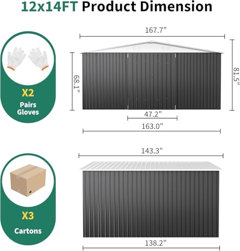 【Spacious Storage Solution】Measuring a generous 167.7″D x 138.5″W x 86.1″H, our shed offers ample space to house your gardening tools, equipment, and outdoor necessities without clutter.