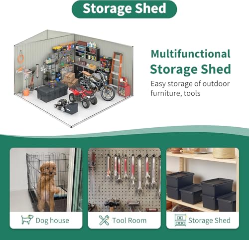 【Premium Material Selection】The garden shed features superior-grade metal with waterproof and UV-resistant capabilities. Its robust construction ensures reliable all-weather protection, standing up to even the most challenging conditions.