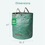 2-Pack 80 Gallon (33H x 26D Inches) Reusable Standable Yard Waste Bags with 4 Handles for Leaves, Debris, Grass Clippings, Garden Trash