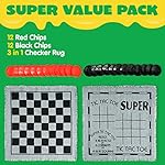 3-in-1 Vintage Giant Checkers, Tic, Tac, Toe, with Reversible Mat, 24 Chips, Family Board Game, Lawn Game, BBQ Party Favor, Indoor and Outdoor Activity for Kids and Adults