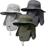 3 Pack Mens Outdoor Wide Brim Fishing Hat,UPF 50+ Sun Protection Cap with Face Neck Flap for Hiking & Garden