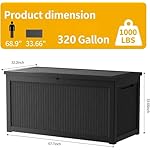320 Gallon Resin Deck Box, Waterproof Outdoor Storage Bin for Patio Furniture, Pool Accessories, and Garden Tools, Lockable & UV-Resistant, Black