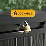 Lockable Patio Storage Solution. Keep your Outside essentials secure with a built-in lockable lid design. Whether you use it as a deck bench, poolside bin, or garden cabinet, this waterproof container is both functional and protected for out of doors use.