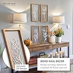 3D Wooden Floral Bathroom Wall Decor (Set of 4) Lightweight, Ready-to-Hang Framed Wall Art For Living Room, Bedroom, or Office – Premium Boho Botanical Farmhouse Decorations – Gift-Boxed