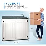 47 Cu ft Outdoor Storage Shed, Resin Outdoor Storage Box for Patio Yard Weatherproof Outdoor Storage Cabinet for Tools Pool Supplies – Lockable Deck Boxes Outdoor Waterproof(Creamy White)