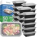 Dealusy 50 Pack (100-Piece) 24 oz Meal Prep Containers Reusable with Lids, Sturdy Leakproof & Food Protected, Microwave, Freezer, Dishwasher Protected Prep Containers, To Go Take Out Plastic Food Storage