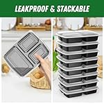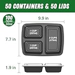 50 Pack (100-Piece) 32 oz Meal Prep Containers Reusable with Lids 3-Compartment, To Go Take Out Plastic Food Storage Containers, Sturdy Leakproof Food Safe, Microwave Freezer Dishwasher Safe, Black