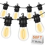 50FT LED Outdoor String Lights with 17 Shatterproof Waterproof S14 Replaceable Bulbs(2 Spare), 2700K Commercial Grade Patio Lights, Outside Hanging Light for Yard Garden Porch Deck Decor