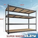 【Multipurpose Extra Wide Storage Shelves】You will be amazed by the large size: 59.8″W x 24″D x 59.8″H. Designed to handle large volumes of items, this garage shelving unit offers ample space for all your storage needs,especially the larger ones. The 59.8″W adjustable shelf allows for effective classification and organization, catering to your storage requirements for a variety of items such as garage tires, tools, storage boxes, food and so on. It is ideal for maintaining a neat and orderly space in the garage, pantry, basement, storage room, school, library, supermarket, warehouse, workshop, shop and more