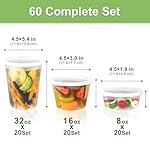 60 Sets (120-Piece) Deli Containers with Lids, 32/16/8 oz X 20 Set Each, Leak-Proof & BPA Free Airtight Takeout Plastic Food Storage Containers for Soup, Freezer/Microwave/Dishwasher Safe