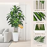Ideal Green Decoration Options: This artificial dracaena tree stands 6ft tall plant with a black nursery pot, each branch is carefully arranged and covered with a lot of leaves to make certain that the tree can fully display its vivid and three dimensional sense even in a larger space, and the design is exquisite and brings a rich natural atmosphere.
