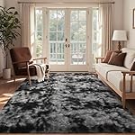 6×9 Ft Large Shag Rugs for Living Room Decor, Tie-Dyed Ultra Soft Fluffy Furry Area Rugs for Bedroom Indoor Floor, Aesthetic Carpet for Kids Home (Dark Grey)