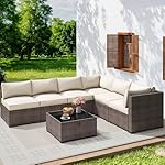 7 Piece Outdoor Patio Furniture Set, Outdoor Sectional Furniture, Rattan & Wicker Modern Modular Conversation Set Sectional Sofa W/Water Resistant Washable Thick Cushions and Coffee Table, Brown/Beige
