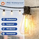 【Light up outdoors, rain or shine】Our ETL-certified, IP65 string lights stand tough against weather. Shatterproof PET bulbs of the patio lights ensure safety – no glass, just durable plastic. Efficient & lasting glow