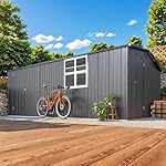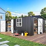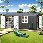 AECOJOY 16′ x 12′ Outdoor Storage Shed, Large Metal Sheds & Outdoor Storage Clearance 12×16 with Windows, Steel Backyard Shed, Utility Tool Storage for Garden, Patio, Outside use in Dark Grey