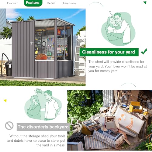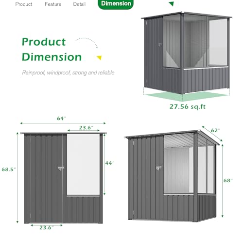 Spacious & Practical Layout – Measuring 64″ L × 60″ W × 68.5″ H (5.3×5 FT), the shed provides ample room for tools, bicycles, small machinery, and other Out of doors essentials. You’ll also purchase some shelves to make it more organized and efficient.