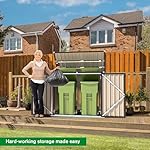 Portability and Security: When used as an out of doors trash can storage, the design includes independent, upward-opening lid hooks that attach directly to the garbage can lid. A hydraulic mechanism ensures smooth opening and closing. Lockable double doors extend to 47 inches, taking into consideration the storage of longer items like bicycles and enhancing security, making it a versatile solution for both bike storage and outside storage.