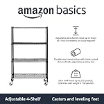 Amazon Basics 4-Shelf Adjustable, Heavy Duty Storage Shelving Unit on 3” Wheel Casters, Metal Organizer Wire Rack, 36″ L x 14″ W x 57.75″ H, Black