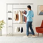 Amazon Basics Expandable Metal Placing Storage Organizer Rack Wardrobe with Shelves, 14″-sixty three” x fifty eight”-seventy two”, Chrome