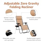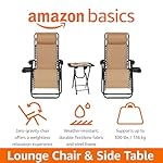 Amazon Basics Textilene Out of doors Adjustable Zero Gravity Folding Reclining Living room Chair with Side table and Pillow – Pack of 2, Tan