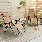 Amazon Basics Outdoor Patio Mesh Adjustable Zero Gravity Lounge Chair Recliners set of 2 with Side Table, 35 x 26 x 43 inches, Beige