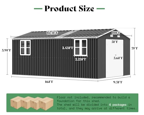 Spacious Interior for Easy Organization: Measuring 10×16.3 FT, this oversized shed provides ample room for tools, garden gear, and seasonal items. Use it as a spacious storage hub or become it into your private backyard workshop