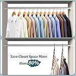 Heavy Duty Space Saving Hangers: Give a boost to hook bearing capacity in order that AMKUFO magic hangers hook may not be stretched easily like other brand hangers do. Sturdier plastic magic hangers without a sharp edges or burrs will give protection to your value clothes. Thicken cross bar save you it sagging. Durable AMKUFO hangers are great for heavy coats, pants, shirts and dresses