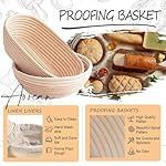 [Versatile Dual-Shape Design]Perfect for bakers who love variety, this banneton bread proofing basket set includes a 9-inch round banneton basket and a 10-inch oval proofing basket, each with linen liners for effortless dough shaping. Whether crafting rustic boules or elegant batards, these sourdough banneton baskets hold up to 2 lbs of dough, catering to all bread baking supplies needs for home bakers and professionals alike.