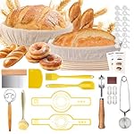 [Complete Sourdough Starter Kit]Everything you want in one bundle: 1x 9 Inch Round Banneton Basket, 1x 10 Inch Oval Proofing Basket, 2x Linen Liners, 1x Round Silicone Bread Sling, 1x Oval Silicone Bread Sling ,1x Dough Whisk, 1x Dough Scraper, 1x Bowl Scraper, 1x Bread Scoring Tool with 5 Blades, 1x Silicone Spatula, 1x Silicone brush, 1x Flour Duster, 1x Cleaning Brush, 16x Baking Stencils. This sourdough starter kit beginners collection simplifies the process, from mixing to proofing, making it the ultimate bread making tools and supplies set for beginners and experts.